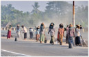 Mais aussi le dur labeur des femmes travaillant à la réfection des routes... et des enfants surpris, par des touristes, pendant la classe...